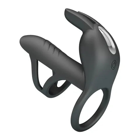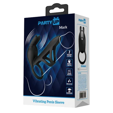 The dynamic Party Up Mark vibrating penis sleeve is designed to heighten pleasure for both partners. The stretchy cock sleeve adds girth and provides snug, stimulating tightness for the wearer, while the textured clitoral stimulator delivers targeted, thrilling vibrations directly to her sweet spot.