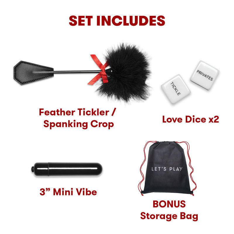 Kiss your boring bedroom goodbye and get ready for a wild night of passion with the Night Of Romance Satin Cuffs With Rose Petal Bedspreaders Set! This six-piece set is packed with kinky accessories, from satin tie cuffs and blindfold to love dice and a mini vibe, plus rose petals and a feather tickler and spanking crop. Roll the dice for endless foreplay ideas and explore new levels of bondage and restraint play. Discover the possibilities of passionate intimacy with your partner or group, and don't run out of ways to play. Spice up your night!