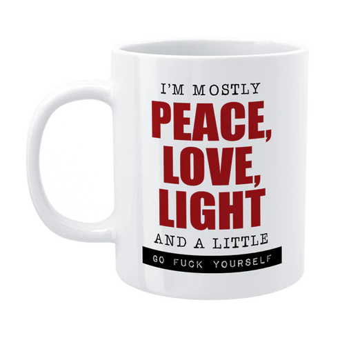 Feeling a little stabby before your first cup of coffee? The Defamations "I Am Mostly Peace" Mug is here to back you up. With a boldly sarcastic message printed on the surface, this mug will ward off anyone crazy enough to approach you pre-caffeine. Or, it'll simply give you a much-needed chuckle to start your day on the right foot.