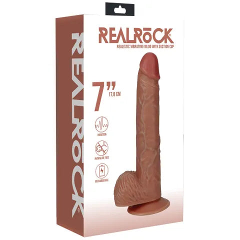 Enjoy yourself to the fullest with this firm and soft-to-touch vibrating dildo, by RealRock®. Its natural looking realistic veins on the shaft, combined with the right size and skin-like design, give you extra stimulation on the inside, making it a dildo that you will not forget in your bedside table.