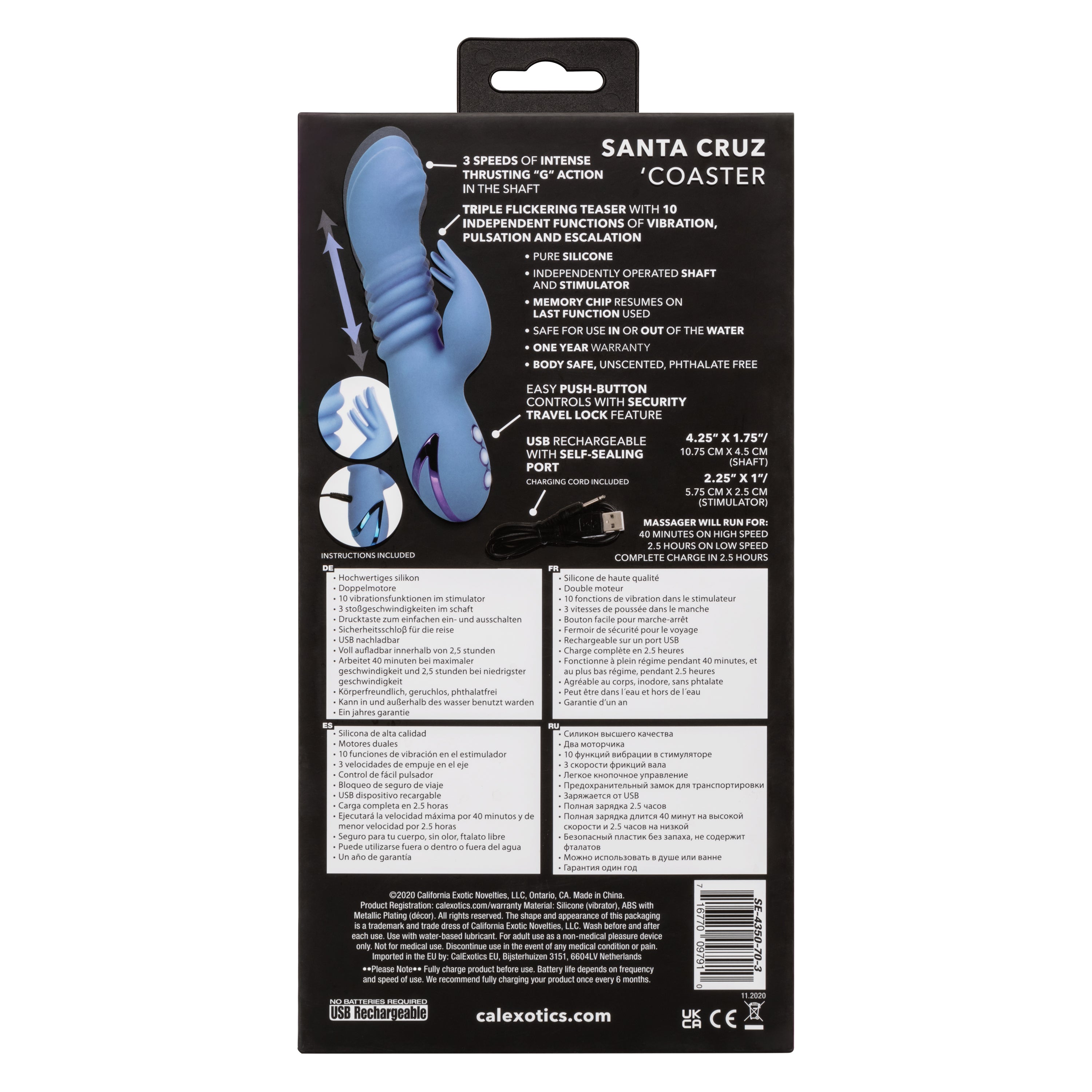 Made of body-safe silicone and completely waterproof, you can rest assured that the 4.25 inch shaft of the California Dreaming® Santa Cruz 'Coaster is up for the challenge, and the tickler will make sure that you are always taken care of in the most pleasurable of all possible ways.