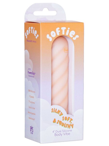 Delve into the silky-soft pleasure of the Softies 4” Dual Silicone Body Vibe. Compact yet powerful, this adorable bullet delivers rumbly, intense vibrations while remaining whisper quiet and discreet, making it perfect for solo play or intimate moments with a partner.