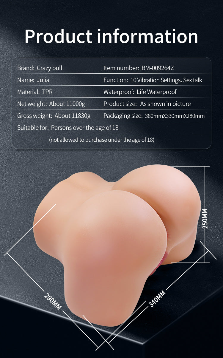 Step into a new level of realism with the Crazy Bull Julia, crafted using advanced Soft Skin technology for an incredibly lifelike look and feel. Designed to replicate natural textures, it delivers an immersive and intensely satisfying experience every time.