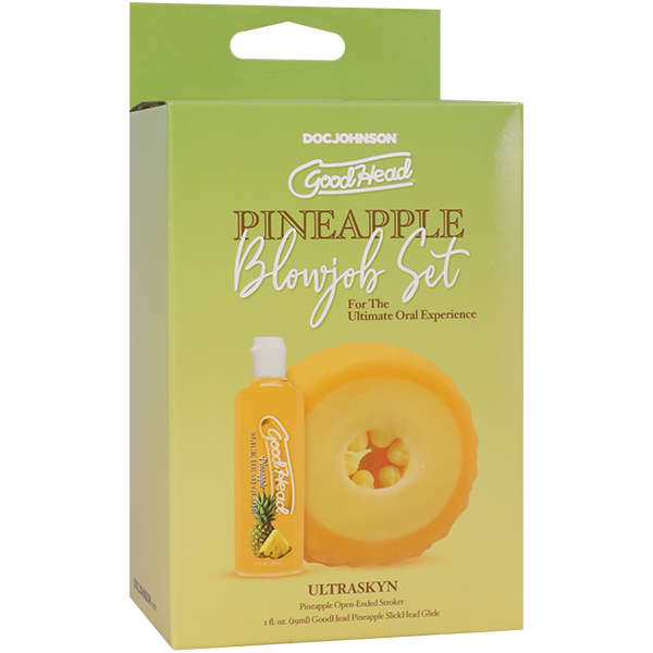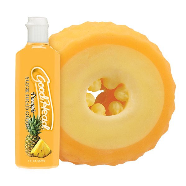 Get all the sweetness of Pineapple without a trip to the grocery store! This adorable open-ended stroker has a tight, textured interior made from ULTRASKYN, for the ultimate feel. It includes a 1 fl. oz. bottle of Pineapple-flavored GoodHead Slick Head and ULTRASKYN Refresh Powder to keep it ripe and ready.