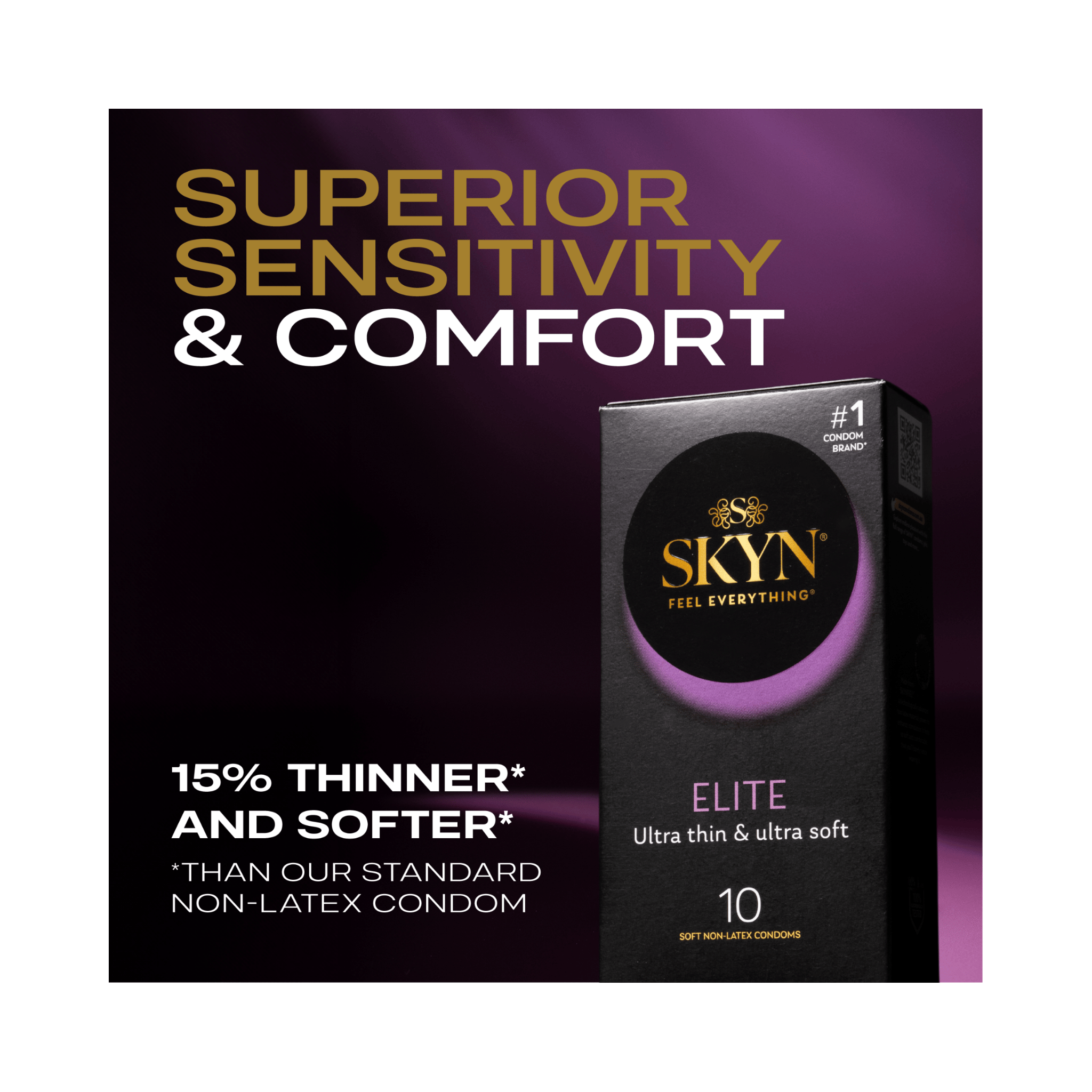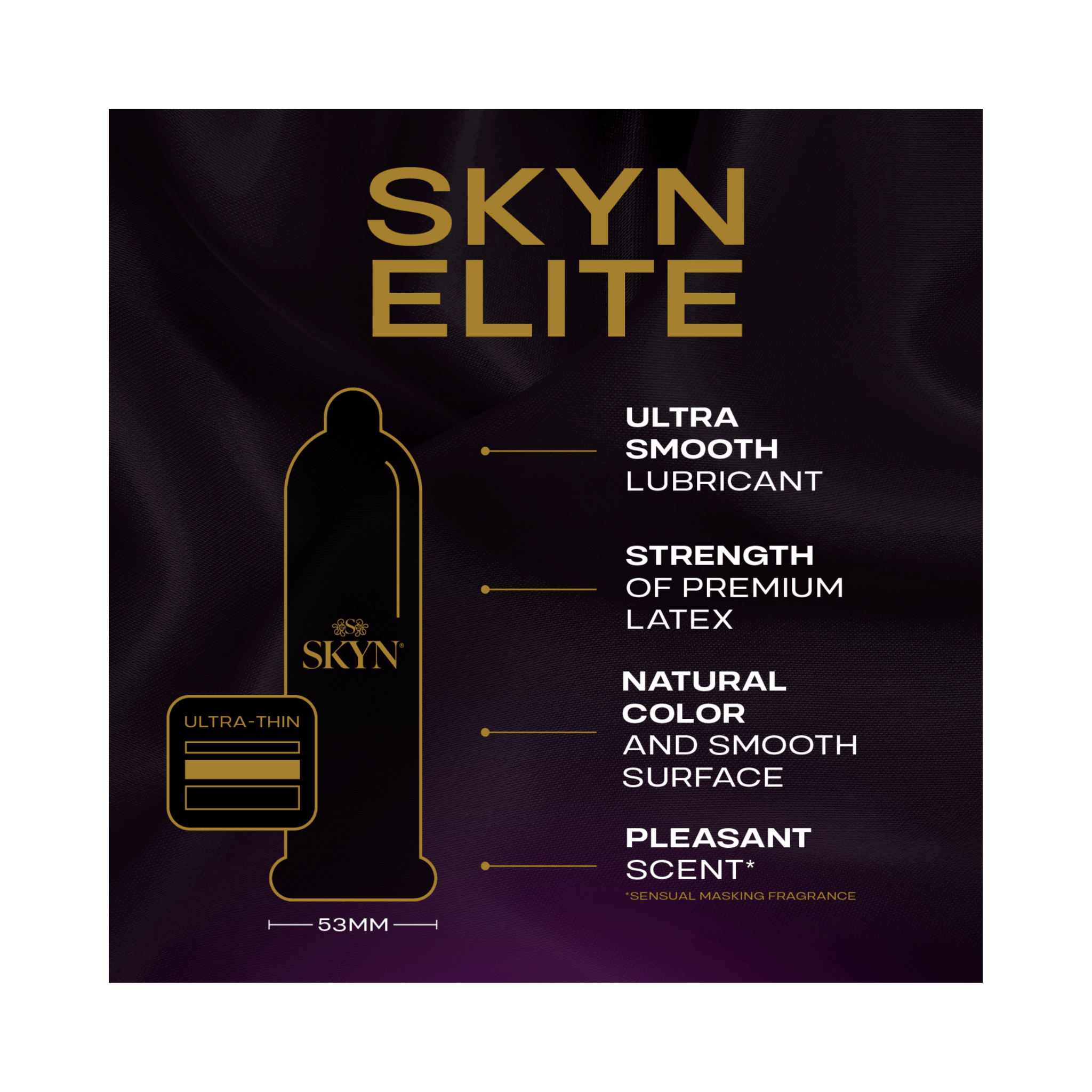 Elevate your intimate experience with Skyn Elite Condoms. Designed for unparalleled sensitivity and comfort, these ultra-thin, ultra-soft condoms are crafted from our revolutionary SKYNFEEL® material - 15% thinner than our original Skyn condoms for a barely-there feel you have to experience to believe. Indulge in a sensual connection like never before.