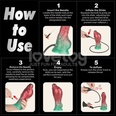 Once positioned, you can simply inflate the dildo to your exact liking, allowing you to enjoy anything from a comfortable, snug presence to a fuller, more intense sensation. Whether you're using it anally or vaginally, the ability to fine-tune size after insertion provides a level of comfort and customisation that truly sets this toy apart.