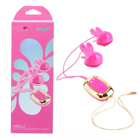 Unleash your wild side with the Molli vibrating nipple clamps, designed to blend thrilling sensations with stylish discretion. Featuring 3 speeds and 7 variable vibration functions, these clamps offer a perfectly customizable mix of pleasure and pain for every mood. Crafted from premium silicone and ABS plastic, they’re durable, waterproof, and comfortable—ready for play anywhere life takes you.