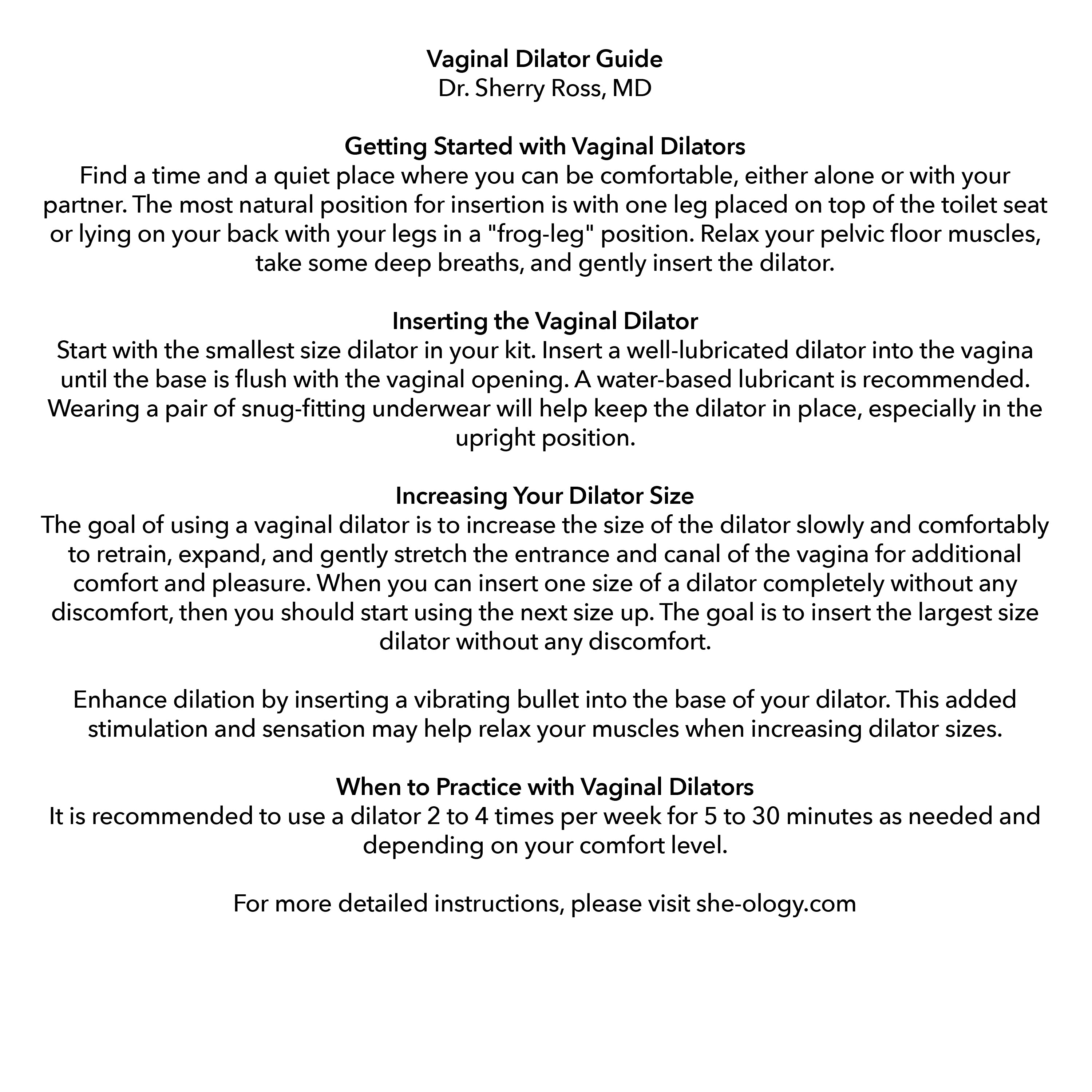 - Comes with a comprehensive dilator guide written by Dr Sherry Ross