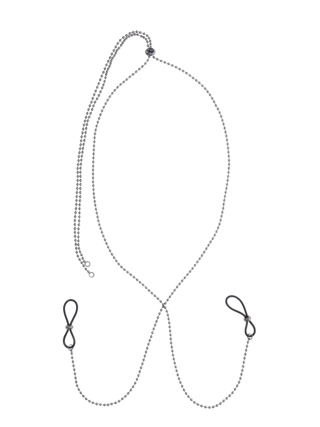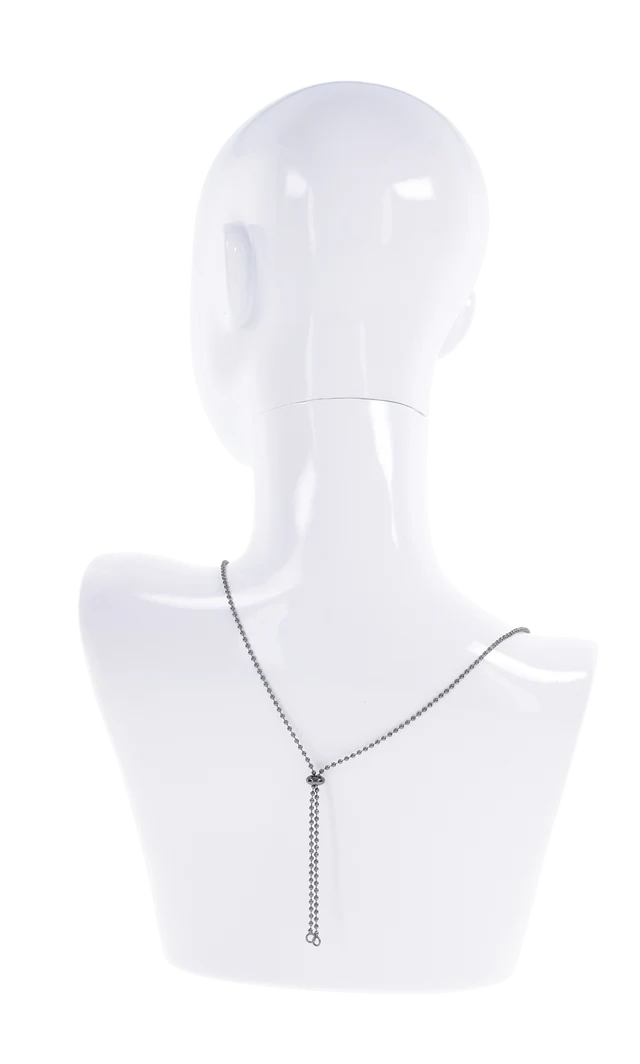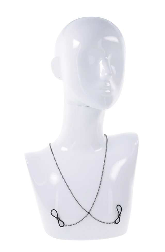 Unleash your adventurous side with the Ex's & Oh's Body Jewelry with Nipple Ties—a daring fusion of jewelry and intimate play. Crafted with sleek gunmetal beading, this sensual piece features a lariat-style back with a sliding bolo mechanism that allows for effortless adjustability, ensuring a perfect fit for many sizes without the need for clasps. Worn discreetly under clothing, the body jewelry’s attached nipple ties offer tantalizing sensory exploration. Perfect for the kinky, the curious, and the voyeuristic, this versatile accessory lets you take the excitement outside the bedroom, adding a spark of thrill to your every encounter.