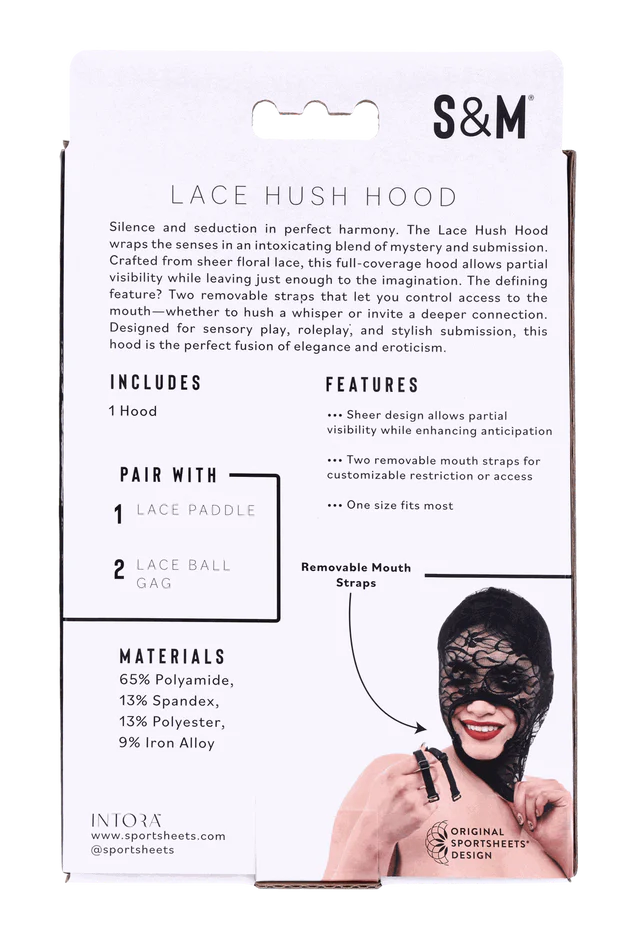 Silence and seduction intertwine seamlessly with the Lace Hush Hood, an exquisite accessory designed to elevate your sensory and role-playing experiences.