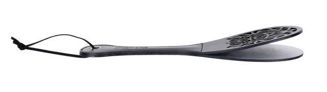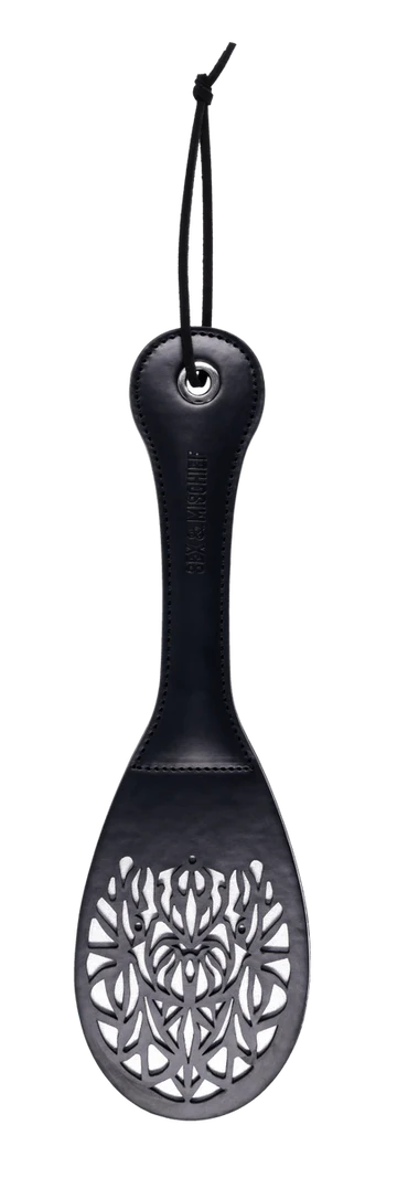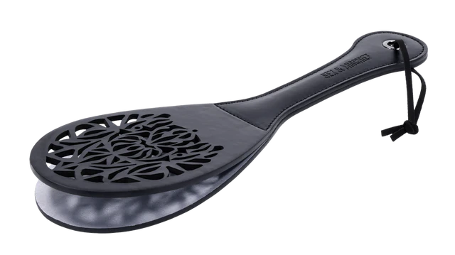 Crafted from sumptuous faux leather and featuring a beautifully intricate lace cutout, this spanker transforms each playful swat into an experience that is both visually alluring and sensually thrilling. The split tips deliver a satisfying snap with every strike, while the delicate lace detailing adds a hint of mystery and sophistication to your scenes.
