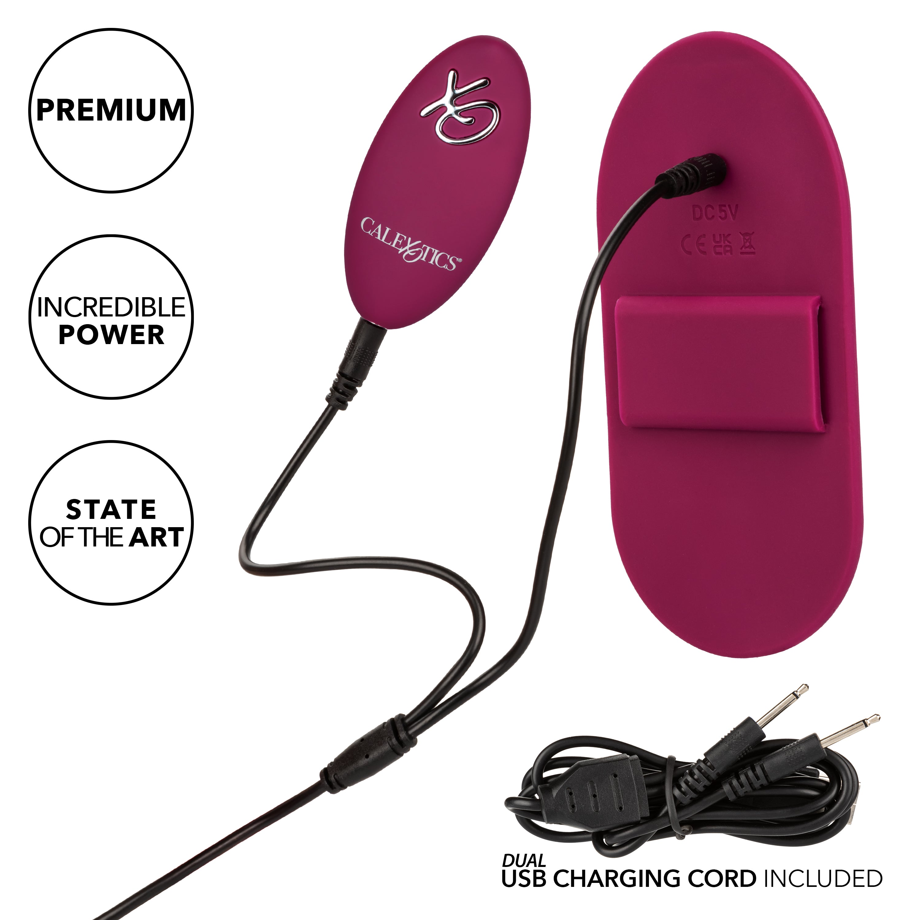 The Dual Rider is as convenient as it is thrilling. It comes with a dual charging cord for the massager and remote, achieving a full charge in just 1.5 hours. Enjoy up to 90 minutes of play on low speed or 50 minutes on high. It also includes a state-of-the-art memory chip that cleverly resumes on the last function used, and a security of a travel lock feature for worry-free transport. Unleash your desires and let the Dual Rider® Remote Control Grinder take the reins.