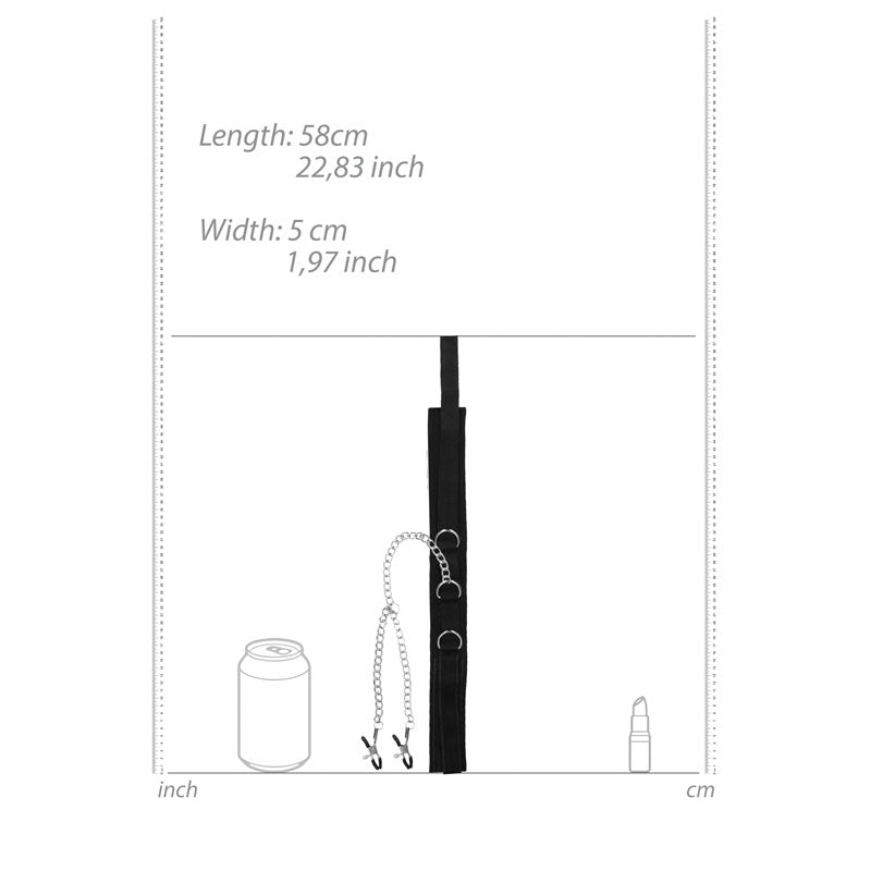 OUCH BLACK AND WHITE VELCRO COLLAR WITH NIPPLE CLAMPS